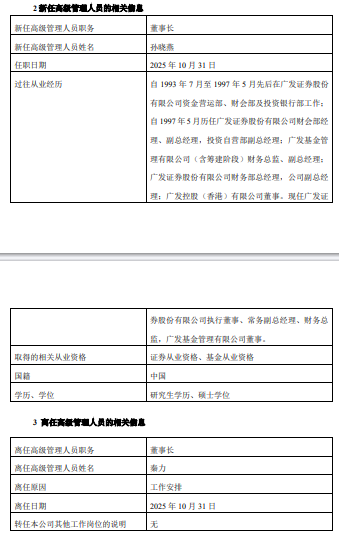 广发证券资管任命孙晓燕为董事长 秦力离任