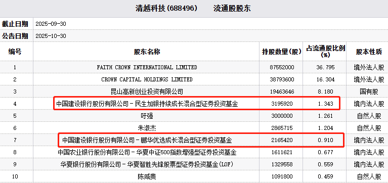 清越科技今年三季报显示,民生加银持续成长混合基金持有该公司319.592万股,占其流通股的1.34%,为最大基金持有人。鹏华优选成长混合基金为第二大基金持有人,持股216.542万股,占比0.91%。