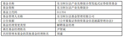 尹智斌离任东方阿尔法产业先锋混合 成立4年亏逾37%