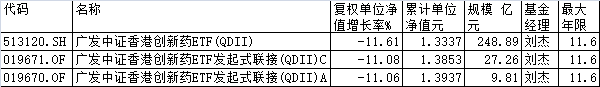 此外,刘杰管理的广发中证香港创新药ETF发起式联接(QDII)A/C也在10月份分别下跌逾11%。