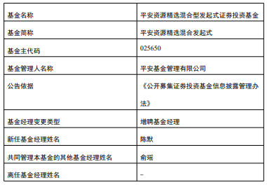 平安资源精选混合发起式增聘陈默