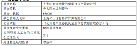 曾炳祥离任光大证券资管旗下2只债基