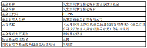中国经济网北京11月11日讯 今日,民生加银基金公告,民生加银聚优精选混合增聘王悦。