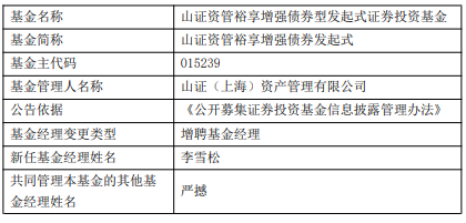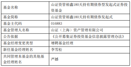 山证资管裕享增强山证资管裕鑫180天债券增聘李雪松