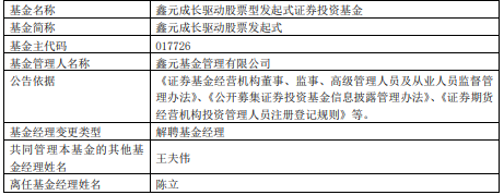 中国经济网北京11月14日讯 今日,鑫元基金公告,陈立离任鑫元成长驱动股票发起式。