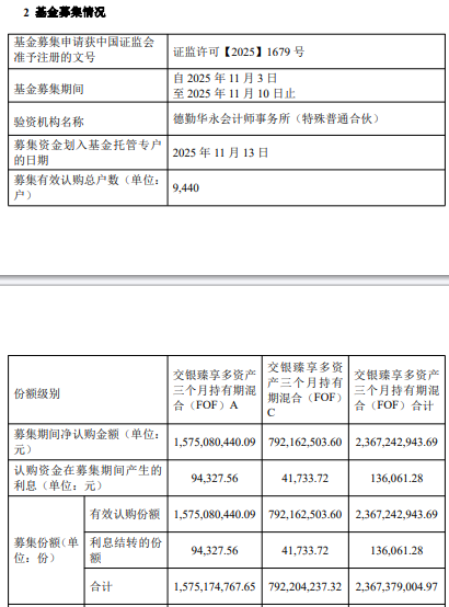 交银臻享多资产三个月混合FOF成立 规模23.67亿元
