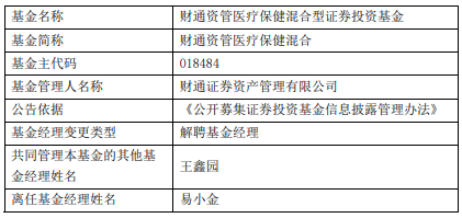易小金离任财通资管旗下3只混基
