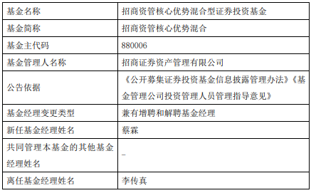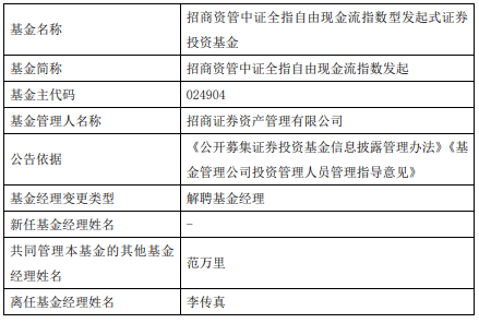 李传真离任招商证券资管旗下2只基金