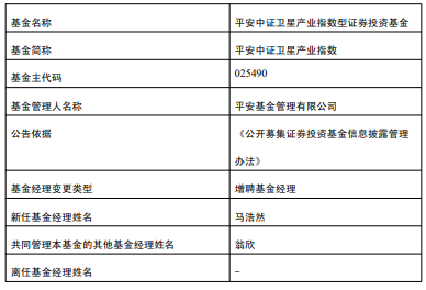 中国经济网北京11月21日讯 今日,平安基金公告,平安中证卫星产业指数增聘马浩然。