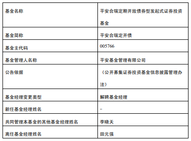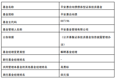 中国经济网北京11月21日讯 近日,平安基金公告,田元强离任平安合瑞定开债、平安惠合纯债。