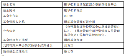 中国经济网北京11月21日讯 近日,鹏华基金公告,鹏华弘和混合增聘姬长春。