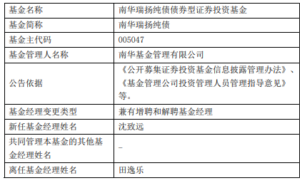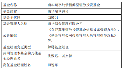 田逸乐离任南华瑞享纯债南华瑞扬纯债