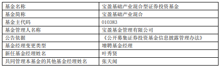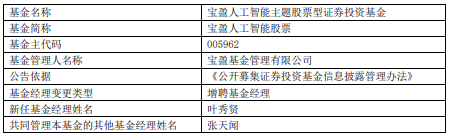 宝盈基础产业混合宝盈人工智能股票增聘叶秀贤