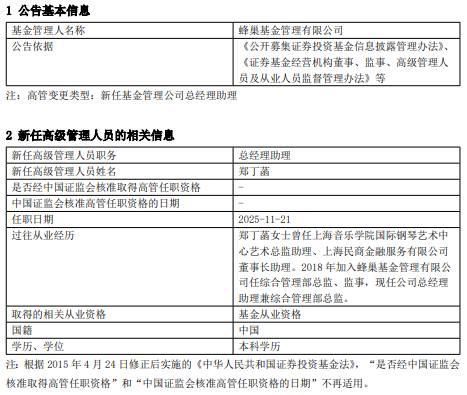 中国经济网北京11月24日讯 近日,蜂巢基金公告,任命郑丁菡为总经理助理。
