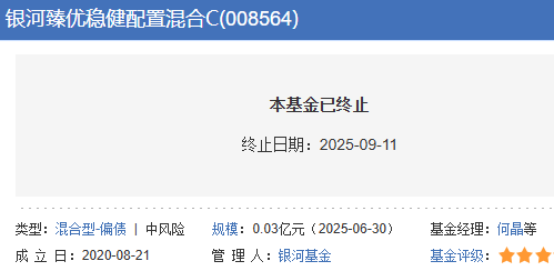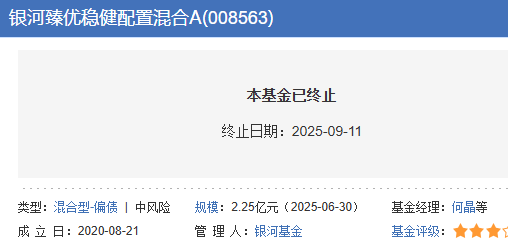 根据基金管理人于2025年9月10日发布的《银河基金管理有限公司关于银河臻优稳健配置混合型证券投资基金基金份额持有人大会表决结果暨决议生效的公告》,银河臻优稳健配置混合型证券投资基金以通讯方式组织召开了基金份额持有人大会,会议投票表决起止时间自2025年8月9日至2025年9月8日17:00时止(以基金管理人收到表决票时间为准)。会议审议并通过了《关于终止银河臻优稳健配置混合型证券投资基金基金合同有关事项的议案》。该基金最后运作日为2025年9月10日,清算期为2025年9月11日(清算开始日)起至2025年10月20日(清算结束日)止期间。
