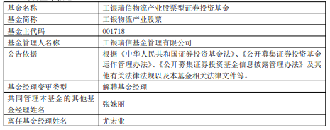 中国经济网北京11月26日讯 今日,工银瑞信基金公告,尤宏业离任工银物流产业股票。