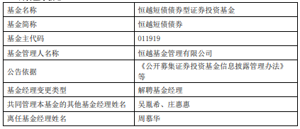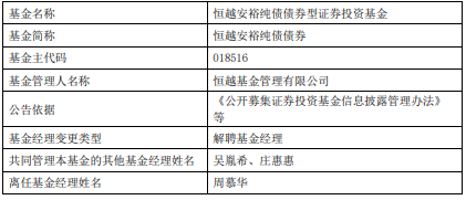 周慕华离任恒越短债债券恒越安裕纯债债券