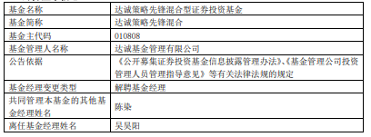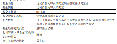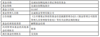 吴昊阳离任达诚基金旗下4混基 累计最大跌幅超3成