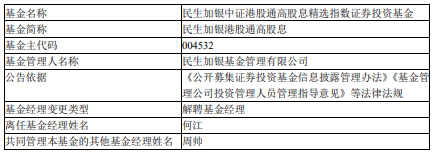 中国经济网北京11月28日讯 今日,民生加银基金公告,何江离任民生加银港股通高股息。