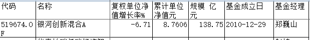 11月份银河创新成长混合基金跌6.7% 规模138.75亿元