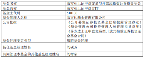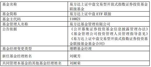 易方达上证中盘ETF易方达上证中盘ETF联接增聘刘砚芳