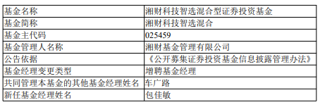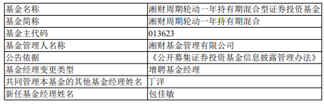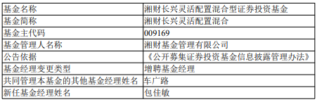 中国经济网北京12月4日讯 今日,湘财基金公告,湘财周期轮动一年持有期混合、湘财长兴灵活配置混合、湘财科技智选混合增聘包佳敏。