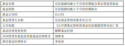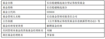 李家春离任长信基金旗下3只基金