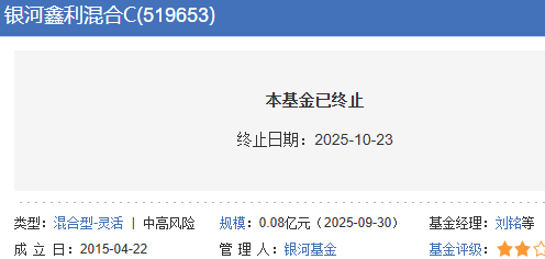 截至2025年10月23日最后一次披露净值日,成立于2015年4月22日的银河鑫利混合A/C累计单位净值为1.6780元、1.5960元,累计收益率为70.28%、60.38%。成立于2015年11月16日的银河鑫利混合I的累计单位净值为1.0720元,累计收益率为5.24%。