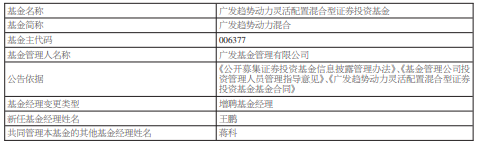 中国经济网北京12月10日讯 今日,广发基金公告,广发趋势动力混合增聘王鹏。