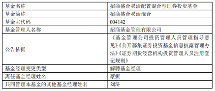 中国经济网北京12月15日讯 近日,招商基金公告,蔡振离任招商盛合灵活混合,刘浒管理。