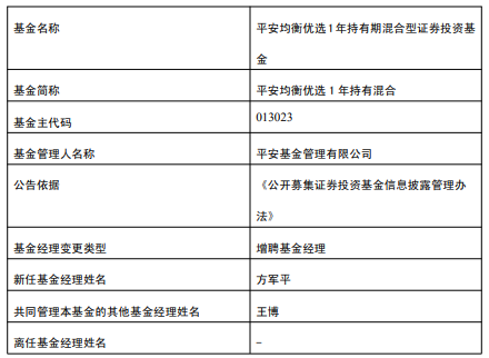 中国经济网北京12月17日讯 今日,平安基金公告,平安均衡优选1年持有混合增聘方军平。