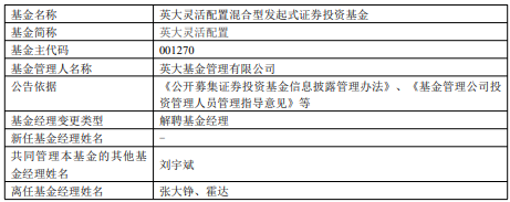中国经济网北京12月22日讯 近日,英大基金公告,张大铮、霍达离任英大灵活配置,刘宇斌管理。