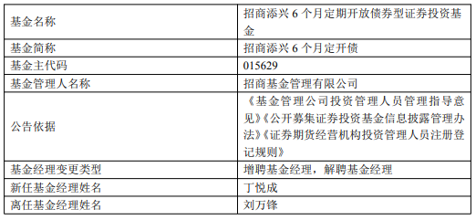 中国经济网北京12月23日讯 今日,招商基金公告,招商添兴6个月定开债增聘丁悦成,刘万锋离任。
