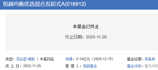截至2025年11月25日最后一次披露净值日,恒越均衡优选混合发起式A/C的累计单位净值为1.1939元、1.1726元,累计收益率为19.39%、17.26%。