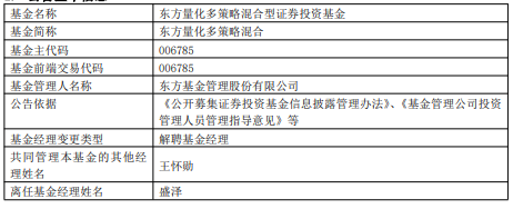 中国经济网北京12月31日讯 今日,东方基金公告,盛泽离任东方量化多策略混合。