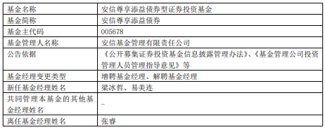 中国经济网北京1231日讯 今日,安信基金公告,安信尊享添益债券增聘梁冰哲、易美连,张睿离任。