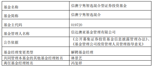 中国经济网北京1231日讯 今日,信达澳亚基金公告,冯玺祥离任信澳宁隽智选混合。