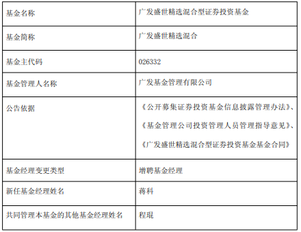 中国经济网北京1月5日讯 近日,广发基金公告,广发盛世精选混合增聘蒋科。