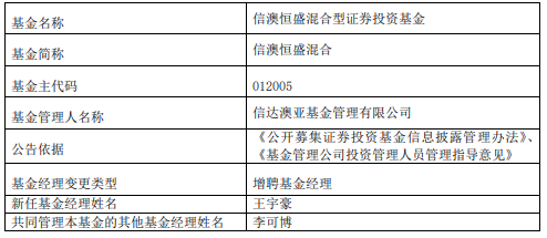 中国经济网北京1月8日讯 今日,信达澳亚基金公告,信澳恒盛混合增聘王宇豪。