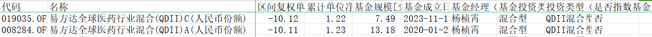 中国经济网北京1月8日讯 据同花顺数据显示,在刚过去的2025年12月份,易方达全球医药行业混合(QDII)C/A(人民币份额)单月下跌10.12%、10.11%。截至2025年三季度末规模为20.67亿元。