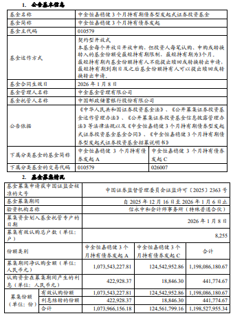 中国经济网北京1月9日讯 今日,中金基金发布中金恒嘉稳健3个月持有期债券型发起式证券投资基金基金合同生效公告。