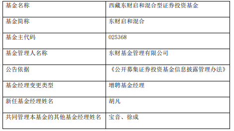 中国经济网北京1月15日讯 今日,东财基金公告,东财启和混合增聘胡凡。