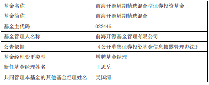 中国经济网北京1月19日讯 近日,前海开源基金公告,前海开源周期精选混合增聘王思岳。