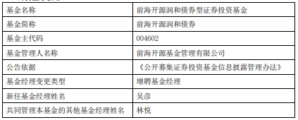 中国经济网北京1月19日讯 近日,前海开源基金公告,前海开源润和债券增聘吴彦。