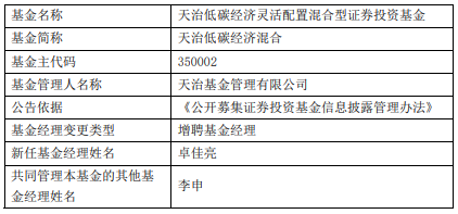 中国经济网北京1月19日讯 近日,天治基金公告,天治低碳经济混合增聘卓佳亮。