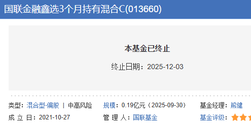 该基金最后运作日为2025年12月2日,自2025年12月3日起进入清算程序。
