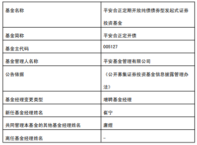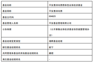 中国经济网北京1月21日讯 今日,平安基金公告,平安合正定开债、平安合润定开债、平安惠泽纯债增聘崔宁。