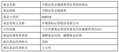 中国经济网北京1月21日讯 今日,中银国际证券股份有限公司公告,中银证券安澈债券增聘刘灿,王文华离任。