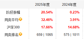 但在2023年至2025年这三年里,该基金在陈涛独自管理下收益率分别为-10.68%、-1.75%、10.33%,而同期同类产品均值却是-11.57%、3.91%、32.46%,后两年的表现明显落后同类均值水平。尤其是在大牛市的2025年里,该基金比同类产品均值水平落后了20个百分点。