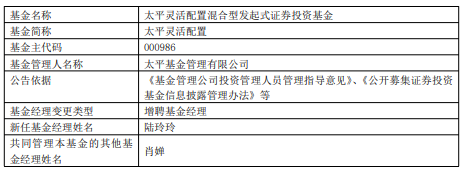 中国经济网北京1月23日讯今日,太平基金公告,太平灵活配置增聘陆玲玲。
